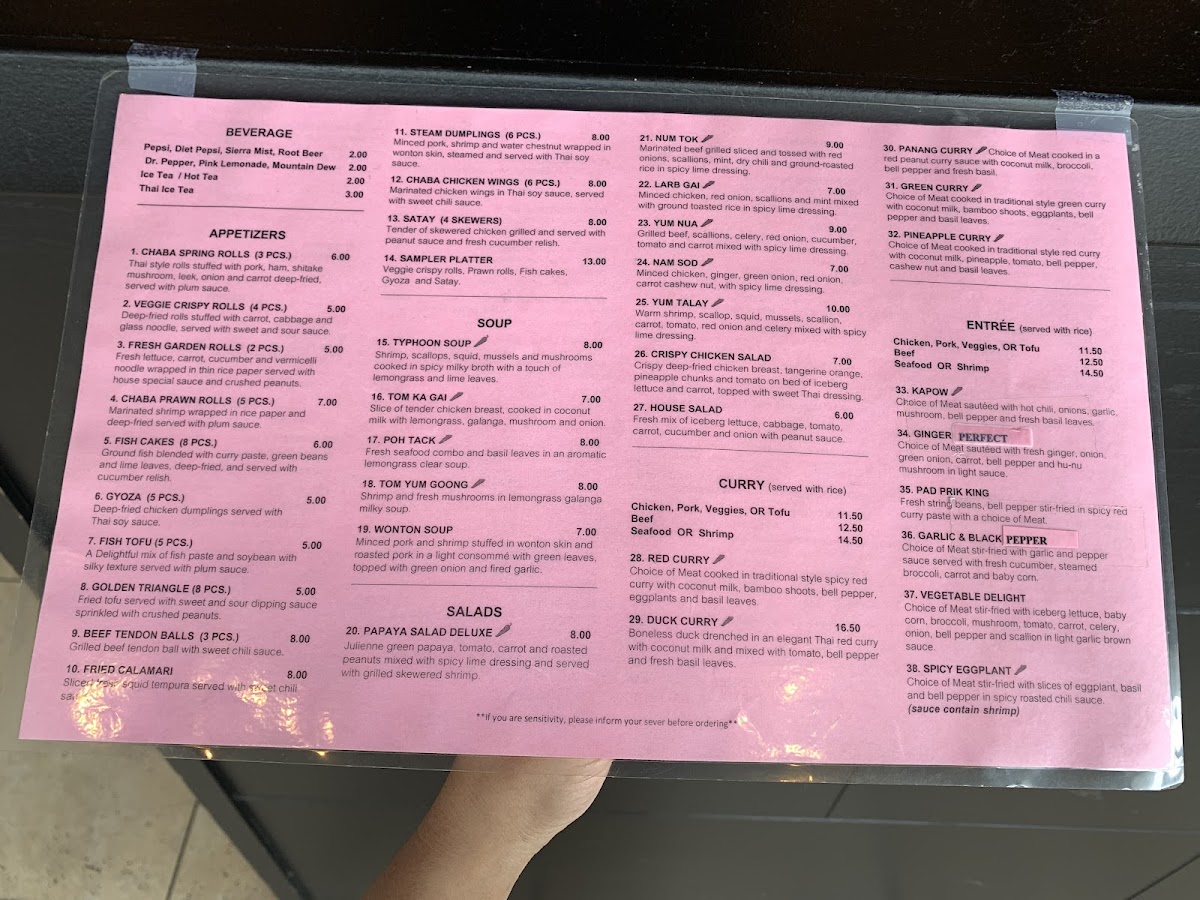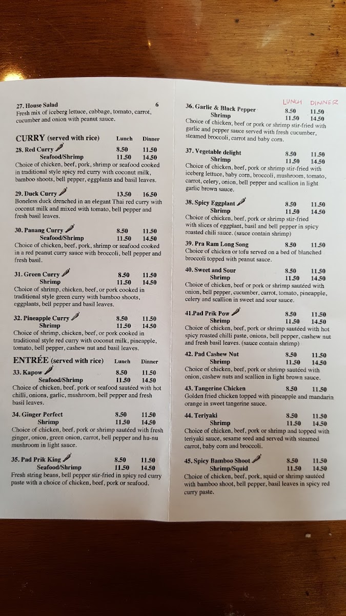 The menu showcases mouthwatering offerings, with standout dishes like the Panang Curry, featuring a rich, spicy peanut sauce combined with aromatic herbs, and the Pineapple Curry, which brings a delightful twist to traditional recipes. Don't miss the Drunken Noodles or the Pad Thai, favorites that many loyal patrons rave about.